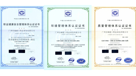 2009年12月28~29日,結合ISO升級換版和公司新增裝飾裝修設計及施工一體化資質ISO認證工作,按照GB/T19001—2008idtISO9001:2008標準、GB/T24001idtISO14001:2004標準和GB/T28001—2001標準要求,我公司順利通過了中鑒認證有限責任公司組織的ISO三體系復評工作,通過三體系再認證審核。2010年2月26日收到新版本《質量管理體系認證證書》、《環境管理體系認證證書》和《職業健康安全管理體系認證證書》。
